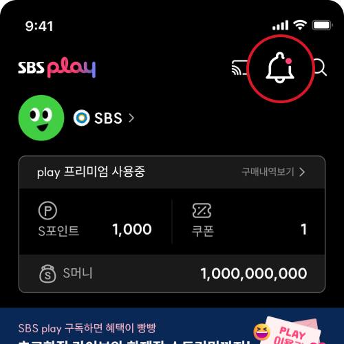 SBS play 이용권 다양한 혜택 지금 시작해 보세요! 광고 없는 실시간 라이브 인기 SBS 채널을 초고화질로, 생생하게 즐겨보세요! 실시간 라이브 타임머신 최대 2시간 전까지, 놓쳐도 걱정 마세요. 되돌아볼 수 있어요! 무제한 다시보기 10만 편 레전드 콘텐츠, 언제든지 마음껏 시청하세요!