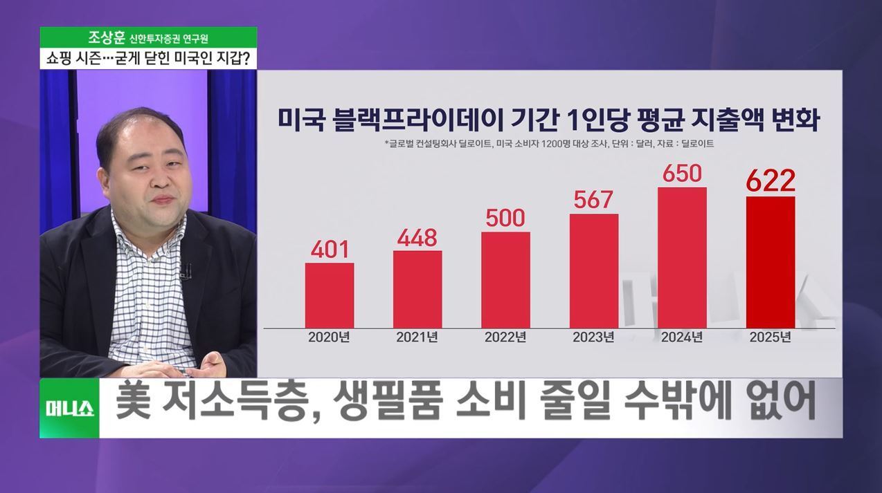 ■ 머니쇼+ &'머니줌인&' - 조상훈 신한투자증권 연구원 간밤에 나온 CNBC의 보도를 보니까 미국 주요 마트나 드럭스토어 등의 진열대에 한국산 화장품이 많은 자리를 자치하고 있다고 해요. 지난해에도 K뷰티에 대한 관심이 상당했잖아요? 한국산 기초 화장품에 대한 인기도 여전히 이어지고 색조 화장품도 판매량이 늘고 있다고 하죠? 지난해 아마존 블랙프라이데이 때 화장품 카테고리 상위를 에이피알의 메디큐브 제품들이 차지했는데요. 미국의 소비 둔화 우려가 나오는 상황에서 올해는 어떨지 알아보겠습니다. 신한투자증권 조상훈 연구원 모셨습니다. Q. 오늘 밤(28일)부터 미국은 블랙프라이데이를 시작으로 사이버먼데이 등 연말 쇼핑 대목에 들어갑니다. 블랙프라이데이라는 것은 사실 소비 중심 국가인 미국을 상징하기도 하는데요. 최근 미국 소비자들은 지갑 열기를 꺼리는 상황이라고 하더라고요? - 美 연말 소비 대목 시작…소비자들 지갑 닫을까 - 美 9월 소매판매 증가율, 4개월 만에 최저치 - 美 콘퍼런스보드 11월 소비자신뢰지수 88.7 - 현지시간 28일 블랙프라이데이…美 &'소비 대목&' - 美 소비자 구매력↓…올해 할인 폭, 예년보다 줄어 - 과거 美 유통가 쿠폰 등 적용해 &'초특가 할인&' - 美 9월 생산자물가지수(PPI) 전월비 0.3%↑ - PPI 상승 시 향후 소비자물가에도 압력 커져 - 美 노동시장 둔화도 뚜렷…&'민간고용 감소세&' - ADP &'연말 채용 시즌, 기업들 고용 축소 우려&' - 높아진 식료품 가격·의료비 등 美 전역 휩쓸어 - 美 저소득층, 생필품 소비 줄일 수밖에 없어 Q. 그래도 추수감사절부터 사이버 먼데이까지 미국에서는 약 1억 명 넘는 인구가 쇼핑에 나설 것이라고 하는데요. 중산층이나 고소득층 위주로, 백화점보다는 월마트 등에서의 소비가 주로 이뤄지게 될까요? - 美 블랙프라이데이 기간, 역대 최다 인파 쇼핑 전망? - 전미소매협회 &'블랙프라이데이, 쇼핑 인구 늘 것&' - 美 유통가, 전년비 블랙프라이데이 매출 증가 전망 - 12월 1일 美 사이버먼데이…온라인 매출 급증 전망 - 美 연말 쇼핑 시즌, 소매업계에는 중요한 시점 - 월마트·아마존·메이시스 등 공격적인 판촉 행사 - 美 관세 정책에 소매업체도 타격…할인률 줄어 - 올해 미국인 1인당 명절 상품 평균 지출 감소 전망 - 美 고소득층, 고물가에 &'가성비&' 제품 찾아 나서 - 월마트 CEO &'저소득층 지출 둔화…고소득층 유입↑&' - 美 셧다운 장기화 여파로 저소득층 소비 위축 - 美 정부 셧다운 당시 식품보조 지급 일시 중단 - BofA &'10월 고소득 가구 소비, 전년비 2.7%↑&' - 美 소비자, 가격에 민감해지며 &'가성비 소비&'로 Q. 특히 블랙브라이데이, 사이버먼데이하면 그간 아마존 온라인 쇼핑 사이트에서 K뷰티가 강세를 보였던 게 떠오르는데요. 에이피알의 메디큐브를 비롯한 국내 화장품 브랜드들이 이번에도 좋은 성과를 거두지 않을까 싶기도 해요? - 에이피알 &'메디큐브&', 이번 블랙프라이데이에도 인기 - 메디큐브, 아마존 블랙프라이데이 뷰티 매출 상위 - 메디큐브 제로 모공 패드·콜라겐 젤 크림 등 인기 - 아마존 뷰티 카테고리 베스트셀러 내 메디큐브 다수 - 지난 아마존 프라임데이, 에이피알 &'메디큐브&' 주목 - K뷰티 미국 온라인 인기에 오프라인 매장 공략 - 티르티르·브이티 등 주요 이커머스 플랫폼서 인기 - 온라인 인기 바탕, 美 오프라인 팝업스토어 오픈 - 티르티르, 40가지 색상의 파운데이션·쿠션 인기 - 에이피알, 북미 시장서 뷰티 디바이스·화장품 인기 - 브이티, 美 팝업스토어 통해 맞춤형 솔루션 제공 Q. 미국의 블랙프라이데이에 맞춰 국내 유통가도 전쟁에 돌입했다고 하죠. 다양한 업종에서 할인 공세를 펴는 데다 SNS에서도 &'K- 블프&'를 내세운 광고가 늘었어요. 국내 백화점이나 마트 등에서 소비 침체 해소를 기대해도 될까요? - 국내 유통가도 &'블랙프라이데이&' 맞이 할인 전쟁 - 美 최대 쇼핑 축제에 국내 유통가도 &'K블프&' - 국내 유통가 &'최저가 경쟁&' 잇따라…기획전 다수 - 이커머스·패션·뷰티업계, 연말 수요 집중 공략 - &'한국형 블프&' 문화…내수 소비 침체 해소 기대 - 저렴하게 재고 판매·큰 폭의 할인 행사도 진행 - 국내 소비자들, 해외 직구 상품 저렴하게 구매 - K블프, 국내 유통채널 최대 규모 쇼핑 행사 진행 - 이커머스 업체, 직구 상품 및 자사 상품도 할인 - 국내 백화점 업계, 블프 시즌 맞춰 정기 세일 - 주요 업종 &'K블프 기획전&'…&'할인율 저조&' 평가 - 정부, 이달 초까지 &'코리아세일페스타&'도 진행 - 업계 &'한미 간 유통 구조 차이로 할인율도 달라&' - 정부 &'소비쿠폰&' 지급에 내수 소비 일부 회복 - 유통 업계 &'한국에서는 체감상 20년째 불경기&' Q. 국내 유통업계가 블랙프라이데이 특수를 노리기도 하지만 사실 그간 내수 부진에 불황을 겪기도 했잖아요. 그런 가운데 백화점만 성장세를 보였다고 하죠. 급증한 외국인 방문객이 한국에 오면 백화점부터 들러 쇼핑을 하기 때문이라고 하던데요? - 방한 외국인 관광객, 오자마자 백화점서 쇼핑? - 내수 소비 부진 속 백화점 &'나 홀로&' 성장세 보여 - 방한 관광객 급증에 백화점 3사 외국인 방문객↑ - 백화점 3사 외국인 방문객 전년비 최대 65%↑ - 지