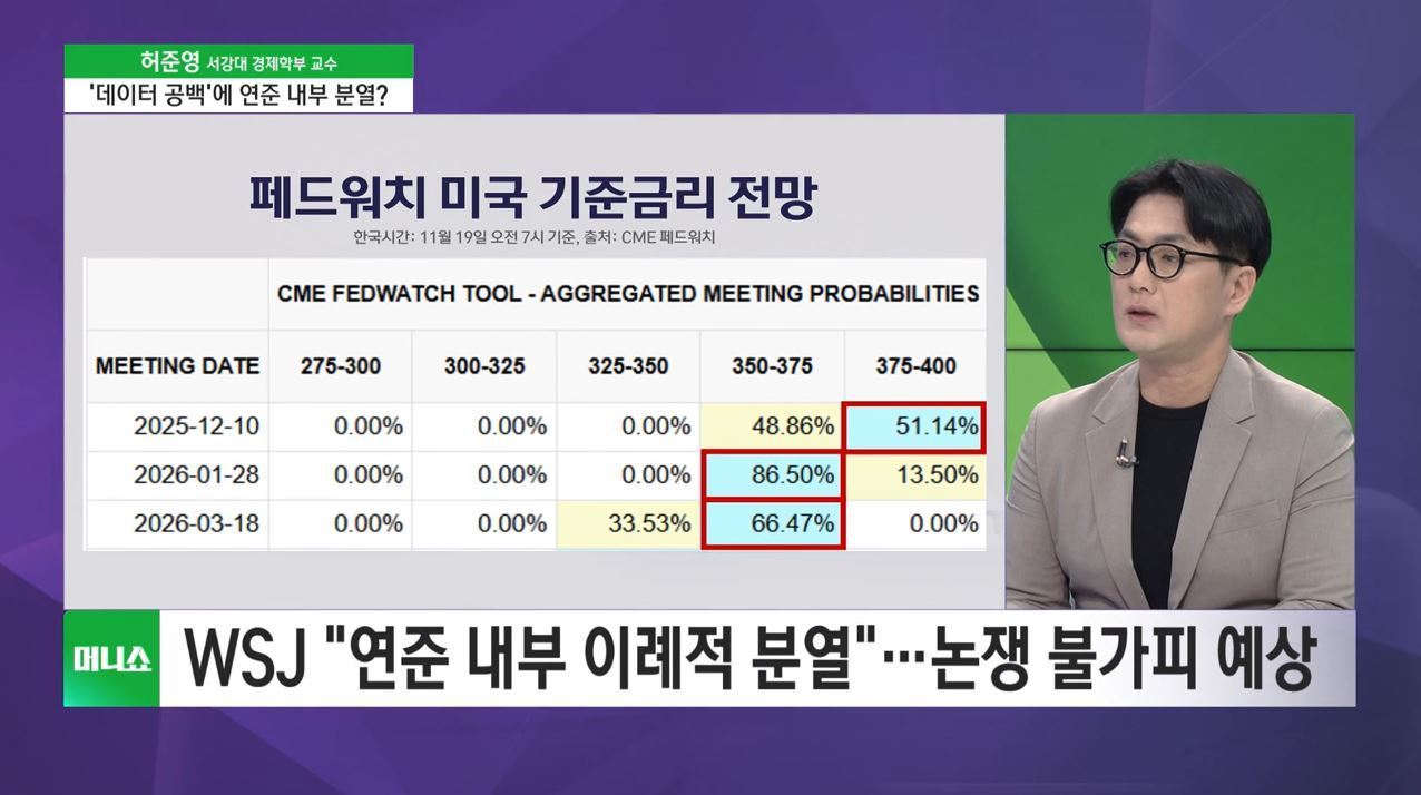 ■ 머니쇼+ &'투자 노하우&' - 허준영 서강대 경제학부 교수 증시가 약세를 이어가는 원인 중 하나가 바로 12월 금리인하에 대한 불안이죠. 연준 내부 분열도 심해지고, 트럼프 대통령은 벌써 차기 연준 의장을 결정했다며 불안을 키우는 상황이잖아요? 이번 주 내에 공개될 10월 FOMC 의사록과 9월 비농업 고용을 확인하면 좀 더 방향이 잡히지 않을까 싶기도 해요. 그와 더불어 미국인들의 소득에 따른 소비 양극화도 심각한 상황이라고 하는데요. 서강대 경제학부 허준영 교수 모시고 자세히 알아보겠습니다. Q. 12월 FOMC를 앞두고 &'데이터&'를 보고 결정하겠다는 파월 의장의 말과 달리 장기간의 셧다운으로 인해 거시 지표 발표는 상당히 지연된 상황인데요. 그런 가운데 미국 고용시장은 급속도로 위축되고 있고, 연준 위원 간의 의견 차는 심해져서 예측조차 불가능해진 상황이에요? - 데이터 공백·고용 냉각 신호…딜레마 빠진 연준? - 美 주요 기업 대규모 감원 예고…구조조정 잇따라 - 현지시간 12월 9~10일 美 연준 FOMC 회의 예정 - 연준 위원들의 매파적·비둘기파적 발언 혼재 - WSJ &'연준 내부 이례적 분열&'…논쟁 불가피 예상 - CG&&C &'美 10월 감원 15.3만 명…전년비 급증&' - 美 기업들 감원 계획·규모 증가…&'고용 시장 약화&' - 노동시장 해석 두고 연준 인사들 간 의견차 심화 - 고용 초점 입장 &'과도한 긴축, 美 경기 침체 야기&' - 인플레 우려 입장 &'관세 영향…추가 인하는 위험&' - 일부 연준 인사, 인플레 이유로 금리 유지 필요 주장 - 월러 이사 &'노동시장 약세…25bp 추가 인하 지지&' Q. 고용 시장 둔화로 금리인하가 필요하다는 주장도 연일 나오는 상황에서 정부의 공식 고용지표는 발표되지 않았지만, 주요 기업들의 대규모 감원을 통해 추측할 뿐이잖아요. 과거 팬데믹 당시보다 불안한 상황이라고 해요? - 美 기업 &'소규모 해고&'…조용히 감원, 여론 비난 회피 - 美 근로자들, 팬데믹 때보다 직업에 대한 불안 높아 - 美 기업 정리해고 무게 중심…50명 미만 소규모로 - 美 기업들에 &'조용한 감원&'은 운영의 일부로 자리 - 근로자 불안 키우는 소규모 해고…기업 &'회피 전략&' - 소규모 해고, 공식 보고 의무 없거나 요건도 완화 - 美 10월 해고건수 급증…&'19년 만에 최대 수준&' - 아마존·MS 등 빅테크도…해고, 전년비 65%↑ - 美 10월 구조조정, 팬데믹 제외 금융위기 후 최대 - 블룸버그 &'美 기업 예고 후 대량 해고…10월 급증&' - CG&&C &'1~10월 美 기업 누적 감원 109.9만 건&' Q. 미국은 소비의 나라라고 불리는 데다 이 시기쯤 되면 매년 블랙프라이데이 등 연말연시 소비 시즌이 열리기도 합니다. 그런데 미국의 중산층 이하 소비자들에게서 균열이 나타나고 있다는 소식도 있더라고요. 소득에 따른 계층 별 양극화도 갈수록 심해지고 있다고 해요? - &'소비의 나라&' 미국, 소득 별 소비 양극화도 심화? - 美 중산·저소득층 경제 악화…&'K자형 충격 확대&' - 美 경제지표와 무관하게 중·저소득층은 한계 상황 - 모건스탠리 CIO &'美 경제 K자형 양극화 주목&' - 美 중·저소득층서 &'진짜 균열&' 나타나…소비 위축 - 중·저소득층 소비 둔화…2026년 美 경제에 위기? - 美 경제 성장…중·저소득층의 &'소비 지속&'에 달려 - 美 고소득층, 상당수의 주식 보유…소비도 지속 - 美 소득 하위 60% 가구, 부담 가중되며 소비 감소 - 美 정부 인력↓…청년층의 주거비·학자금 부담↑ - 오바마케어 가입자, 2026년 보험료 두배로 올라 - 美 저소득층 저축률 4.6%…80년래 평균 하회 - 美 저소득층 車서브프라임 60일 연체율 6.7% - 美 저소득층 신용카드 30일 연체율 5.3%에 달해 - 美 중·저소득층, 생필품 가격과 &'두더지 게임&' 중 - 美 달걀·커피·자동차보험 등 필수품 가격 급등 - 美 임금 상승률 2.5%…물가 따라가기엔 역부족 Q. 최근 미시간대가 발표한 미국의 소비심리 지표도 그렇고 패스트푸드 체인인 웬디스는 수백 개의 매장을 폐점하는 등 중·저소득층의 소비는 갈수록 막막해지고 있다고 해요. 그들에게는 햄버거 하나도 사치가 됐다고 할 정도라던데요? - 美 패스트푸드 체인 웬디스, 매장 수백 곳 폐점 - 웬디스 CEO &'2026년, 200곳 이상의 매장 폐점&' - 웬디스, 3분기 글로벌 매출 전년비 2.6%↓ - 웬디스, 3분기 미국 내 배출 전년비 4.7%↓ - 웬디스 CEO &'고객 방문 감소로 매출도 줄어&' - 웬디스 CEO &'매장 폐점…시스템 최적화의 일환&' - 美 저소득층에겐 햄버거도 사치…&'인플레 심화&' - LA 타임스 &'맥도날드, 美 저소득층 고객 잃어&' - 맥도날드, 주 고객층인 저소득층 방문 감소세 - 맥도날드 &'매장 방문, 저소득층↓ 고소득층↑&' - 美 맥도날드 빅맥 5.29달러…5년 새 40%↑ - 자동차·항공 등도 고물가로 저소득층 부담 우려 - 델타항공 &'프리미엄 좌석 판매 늘고 일반석 줄어&' - 고급 호텔 브랜드 매출 증가…저가호텔은 감소 - 저소득층은 생계 유지 &'막막&'…고소득층은 소비↑ Q. 미국인들의 생활비 부담에 대한 불만이 커지는 가운데 트럼프 대통령은 맥도날드 가맹점주 행사에 참석해 가격 인하에 감사를 표했고, 물가를 낮추기 위한 진전도 이뤘다고 말했죠. 하지만 여전히 미국은 고물가 상황이잖아요. 그래서인지 정부 차원의 대책도 속속 내놓고 