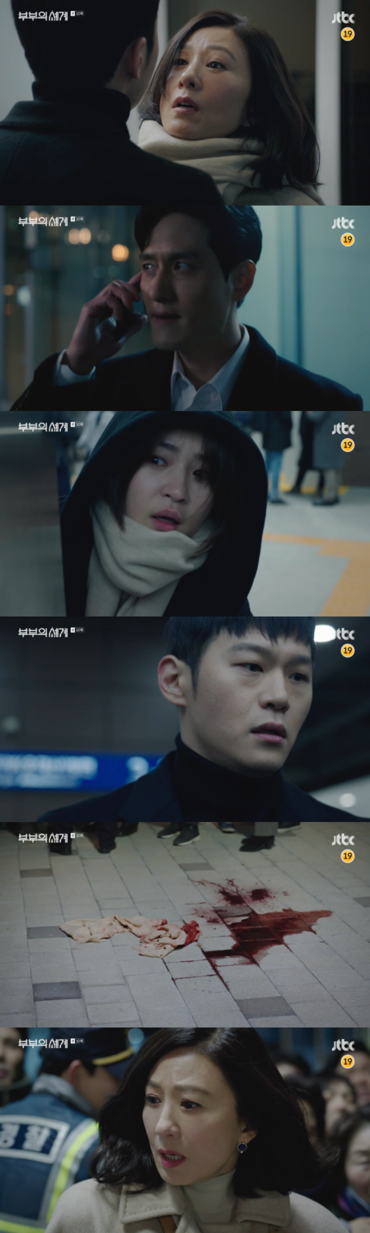 JTBC 금토드라마 '부부의 세계'가 살인을 암시한 충격 엔딩으로 시청자들을 충격에 빠뜨렸다. 지난 25일 밤 방송된 10회에서는 지선우가 남자친구 박인규의 추격으로 위기에 빠지는 모습이 그려졌다.