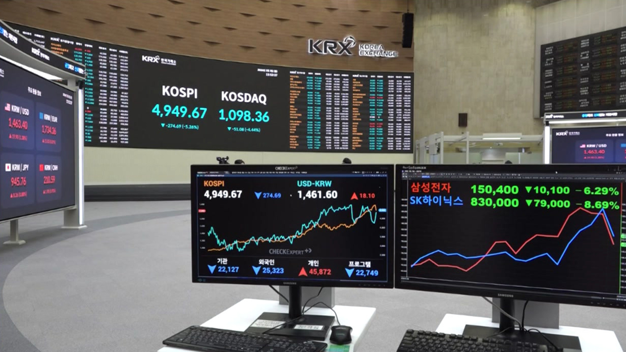 오늘 우리 증시가 급락하며 올해 처음으로 기관의 프로그램 매도를 일시 중단하는 매도 사이드카가 발동됐습니다. 코스피는 하루 만에 5%나 빠지며 4거래일 만에 5천 고지를 반납했습니다.