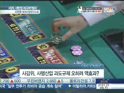 ■사감위, 사행산업 과도규제 오히려 역효과? / 서천범 레저산업연구소장 전북 김제 &'마늘밭 형제&'가 불법 도박 사이트를 통해 170억원을 벌어들인 것으로 논란이 일고 있는데 정말 170억원이라고 하니 도박산업 규모도 작지 않은 것 같다. ○불법 도박산업 규모 우리나라 불법 도박산업 규모 어느 정도인지는 불법도박은 말 그대로 숨어서 하는 도박이니 만큼, 시장규모를 정확하게 추정하기는 쉽지 않지만 불법도박 시장규모는 약 53조~88조원 정도로 추정되고 있다. 재정경제부에서는 64조원, 국가정보원에서는 88조원, 아주대 산학협력단에서는 53조원으로 추정하고 있다. 합법적인 사행산업의 시장규모가 2010년 17조 3천억원에 불과한데 불법시장은 합법시장의 3~5배 정도에 이르는 엄청난 규모이다. 또 불법온라인 도박 규모는 2005년 21조 6,000억원에서 2008년에는 32조로 전체 불법시장의 40~60%를 차지하는 것으로 현대경제연구원이 분석했다. ○합법 사행산업 규모 합법 사행산업 규모로는 정부가 합법적으로 허가한 사행산업은 카지노, 경마, 경륜, 경정, 복권, 스포츠토토 등 6개이다. 이들 사행산업의 총매출액은 17조 3,200억원으로 2009년보다 4.8% 증가했다. 이중 고객에게 배당해주고 남은 순매출액은 7조 2천억원이다. 가장 매출액이 큰 산업은 경마산업은 약 8조원 정도가 되고 복권은 2조 8천억원, 경륜은 2조 5천억원 정도가 된다. 도박이라는 것이 어떤 것은 불법으로 간주하고 어떤 것은 합법사행산업이라 칭하고 헷갈리는 부분도 많다. 불법 도박 산업과 합법 사행산업 차이가 무엇인지는 국가에서 법으로 정하여 인허가 및 관리를 하고 있는 사행산업만을 합법사행산업이라 한다. 합법사행산업에는 강원랜드 카지노, 경마ㆍ경륜ㆍ경정, 복권, 스포츠토토 등 6개가 있다. 또한 합법사행산업이 기금의 확보와 국민의 건전한 여가선용이라는 공익을 위한 목적성이 있는 반면에, 불법도박은 개인의 사적이윤 추구를 목적으로 하고 있고 구매금액 및 구매시간 등의 제한이 없어 높은 도박성으로 인한 사회적 부작용이 심각하다. ○사감위 현주소 지금 현재, 사행산업을 통합적으로 관리, 감독하는 사행산업통합감독위원회라는 것이 발족된 것으로 안다. 어떤 기구인지는 지난 2006년 불법도박인 바다이야기 사태를 계기로 사행산업을 통합적으로 관리ㆍ감독하기 위해 발족한 국무총리 직속의 심의ㆍ의결 기구로, 개별법에 따라 관리ㆍ운영되는 합법사행산업만을 관리 감독하고 있다. 사행산업통합감독위원회가 만들어진 것이 2006년 바다이야기 때문이다. 즉 불법도박을 단속하고 합법적인 사행산업을 건전 레저화시키는 목적을 갖고 만들어졌다고 본다. 그런데 지금까지 사감위는 불법도박에 대해서는 전혀 신경을 쓰지 않고, 오히려 관리ㆍ감독이 비교적 잘 되고 있는 합법적인 사행산업에 대한 규제에만 열을 올리고 있다. 현재처럼 불법도박을 단속하지 않으면 위원회 존립 자체가 의미가 없다고 생각된다. ○합법 사행사업규제 역효과? 합법적인 사행산업을 규제하는 것이 오히려 풍선효과를 일으킬 수 있다는 언급을 했는데 어떤 면에서 그렇게 생각하는지는 합법사행산업에 대한 지나친 규제로 합법사행산업이 위축되면서 그 사행욕구는 불법도박시장으로 쏠릴 수밖에 없어 불법도박시장을 키우는 결과를 가져온다. 한 예로 강원랜드는 한단 출입일수는 20일에서 15일로 축소했고, 스포츠토토는 전산시스템 점검이라는 명목으로 1주일간 휴장했다. 또 경마, 경륜의 온라인 베팅을 금지시켰다. 이런 조치들 때문에 합법산업을 즐기는 분들이 불법시장으로 이동하게 하면서 풍선효과를 가져오게 한 것이다. ○사감위 개정 방향 사행산업통합감독위원회법 개선해 나가야 할 부분도 있는 것 같다. 개정한다면 어떤 방향으로 개정해야 하는지는 개별법에 따라 관리되고 있는 합법사행산업은 소관부처에 일임하여 합법사행산업은 건전한 여가, 레저산업으로 발전할 수 있도록 해야 한다. 불법도박에 대해서는 경찰청 공조는 물론 단독 수사도 가능하도록 단속권한 부여하고 불법도박시장 전담기구로 개편하는 방향으로 사감위법을 개정하는 것이 타당하다. 특히 경마, 경륜, 경정, 강원랜드 카지노, 복권 같은 합법적인 사행산업에 대한 규제를 완화해서, 불법도박자들이 폐해가 적은 합법적인 사행산업으로 발길을 돌릴 수 있도록 유도할 필요가 있다. 각종 규제를 철폐해 불법시장의 이용자를 합법시장으로 유도하여 건전하게 즐길 수 있는 기틀을 마련해야 한다. 이처럼 합법적인 사행산업에 대한 규제를 완화하고 불법도박을 강력히 단속할 경우에는 불법도박시장이 줄어들고 해외원정 도박도 줄어들 것이다. 무조건 규제를 강화하는 것이 만능이 아니다. (www.SBSCNBC.co.kr) (보다 자세한 내용은 동영상 시청을 바랍니다.)