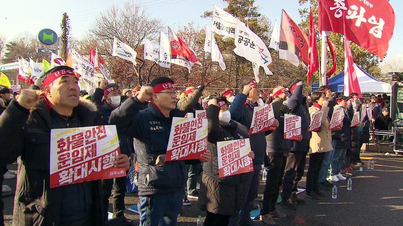 ■ 경제와이드 이슈&& &'핫이슈 키워드&' - 장연재 이슈의 흐름을 살펴보는 핫이슈 키워드 시간입니다. 인터넷과 SNS를 뜨겁게 달구고 있는 오늘(7일)의 키워드 함께 보시죠. ◇ 민주노총 총파업 화물연대 총파업을 지지하는 민주노총의 연대 파업 집회가 어제(6일) 전국 곳곳에서 열렸습니다. 민주노총은 전국 15개 거점에서 동시다발적으로 대규모 집회를 열었고, 건설노조와 서비스연맹 등은 화물연대 동조 파업을 예고했습니다. 하지만 임단협 교섭 중인 현대중공업과 현대제철, 대우조선해양 등 대형 사업장 노조들이 파업에 참여하지 않으면서 파급력은 예상보다 크지 않았습니다. 업무 복귀가 이뤄지는 것 아니냐는 관측도 나왔지만 화물연대는 혼선이 있었다며 이탈 조합원은 없다고 주장했습니다. 반면 정부는 업무개시명령을 받은 시멘트 분야 운송사 7곳과 화물차주 43명의 운송 재개 사실을 확인했다며 화물연대를 압박했습니다. ◇ 축구 대표팀 대통령 오찬 카타르월드컵에서 선전을 펼치며 16강 진출을 달성한 축구 대표팀이 오늘(7일) 오후 귀국합니다. 중동에서 뛰고 있는 정우영과 김승규, 독일에서 활약 중인 정우영을 제외한 24명의 선수들과 벤투 감독 등 코칭 스태프 전원이 오늘 오후 항공편 2대로 나눠 귀국합니다. 선수들은 인천공항에서 간단한 환영행사를 가진 뒤 귀가하고, 이르면 내일(8일) 용산 대통령실에서 윤석열 대통령과 오찬을 가질 것으로 알려졌습니다. 앞서 윤 대통령은 한국 축구대표팀에 &'손흥민 주장을 비롯한 26명의 선수 여러분, 벤투 감독과 코치진 모두 너무나 수고했다&'고 전한 바 있습니다. ◇ 긴축 공포 재점화 미국 연방준비제도가 이달과 내년 2월로 예정된 FOMC에서 금리를 0.5%포인트 인상하는 빅스텝을 2번 연속 단행할 수 있다는 전망이 나왔습니다. 미 노동부가 발표한 11월 비농업 부문 신규 고용이 26만 3천명, 미 공급관리협회 ISM 11월 비제조업 서비스 구매관리자 지수 모두 시장 예상치를 훌쩍 뛰어넘으면서 미국 경기가 아직 좋다는 시각이 우세해졌기 때문인데요. 월스트리트저널은 현지시간 5일 &'연준이 최종 금리 수준을 5% 이상으로 높이고, 내년 2월에도 2연속 자이언트 빅스텝을 고려할 수 있다&'고 보도했습니다. ◇ 사라진 고금리 예금 금리가 오르면서 최근까지 저축은행은 6%대, 시중은행들은 5%대 예금 상품을 경쟁적으로 내놓았는데, 이제는 금리가 다시 거꾸로 가고 있습니다. 저축은행을 제외하고 주요 시중은행들에서는 5% 금리 상품이 자취를 감췄습니다. 지난달 한국은행의 기준금리 추가 인상에도 예금 금리가 하락한 건, 당국의 입김이 작용했다는 분석입니다. 이런 가운데 정부와 여당이 취약계층 부담을 덜기 위해 은행권 대출 중도상환수수료를 한시 면제하는 방안을 추진하기로 하면서, 일각에선 &'관치&' 논란이 커지고 있습니다. ◇ 둔촌 주공 청약 실패 단군 이래 최대 재건축 단지로 분양시장의 주목을 받은 둔촌주공아파트가 1순위 청약에서도 한 자릿수 경쟁률을 기록했습니다. 둔촌주공아파트 1순위 청약은 3천695가구 모집에 1만3천647명이 신청해 평균 3.7대 1의 경쟁률로 마감됐습니다. 전용면적 29㎡A만 청약 경쟁률이 12.8대 1로 두 자릿수에 달했습니다. 소형 평수인 39㎡A와 49㎡A는 각각 1대 1과 1.6대 1의 경쟁률을 기록해 저조한 성적을 거뒀습니다. 서울 강남권에서 오랜만에 나온 대단지 아파트가 시장 기대치에 미치지 못하는 흥행성적을 받으면서, 내년 청약시장 분위기가 더 냉각될 것이란 관측도 나옵니다. ◇ 세기의 이혼 1조원대 재산분할을 두고 5년간 소송전을 벌였던 최태원 SK그룹 회장과 노소영 아트센터 나비 관장의 이혼 소송 1심 판결이 나왔습니다. 법원은 최 회장이 노 관장에게 위자료 1억 원과 재산분할로 665억 원을 지급하라고 판결했습니다. 또 최 회장이 판결이 확정된 뒤에도 재산분할금을 지급하지 않으면 연 5%의 비율로 계산한 돈을 지연이자로 지급하도록 했습니다. 앞서 노 관장은 최 회장이 보유한 SK㈜ 주식의 50%를 지급하라고 요구했지만, 법원은 SK㈜ 주식이 이혼에 따른 재산 분할 대상에 포함되지 않는 특유재산이라고 보고 최 회장의 손을 들어줬습니다. ◇ 실내 마스크 해제 한덕수 국무총리가 내년 1월 말쯤 실내 마스크 착용 의무가 해제될 수 있음을 시사했습니다. 한 총리는 어제(6일) 열린 기자간담회에서 &'관련 지표가 진전되면 3월보다 더 일찍 실내 마스크 의무가 해제될 수 있지 않을까 생각한다&'며 이같이 말했습니다. 이어 대전시와 충청남도가 내년부터 실내 마스크 착용 의무를 해제하겠다고 밝힌 데 대해 &'마스크 착용 의무화 조치는 중대본 본부장인 국무총리가 조정할 수 있다&'고 말했습니다. ◇ 절기상 대설 절기상 눈이 많이 내린다는 대설인 오늘 전국이 흐리고 곳곳에 비 또는 눈이 내릴 전망입니다. 기상청에 따르면 오전까지 수도권, 충남권, 전북권, 강원영서, 경북 북부에는 눈 또는 비가 오겠는데요. 예상 적설량은 경기 남부와 영서 남부, 충청 북부와 경북 북부 내륙에 1cm 안팎이 예상됩니다. 그 밖의 중부 지방에도 눈이 흩날리는 곳이 있겠는데요. 오늘 낮 기온은 서울 8도, 대전 10도, 광주